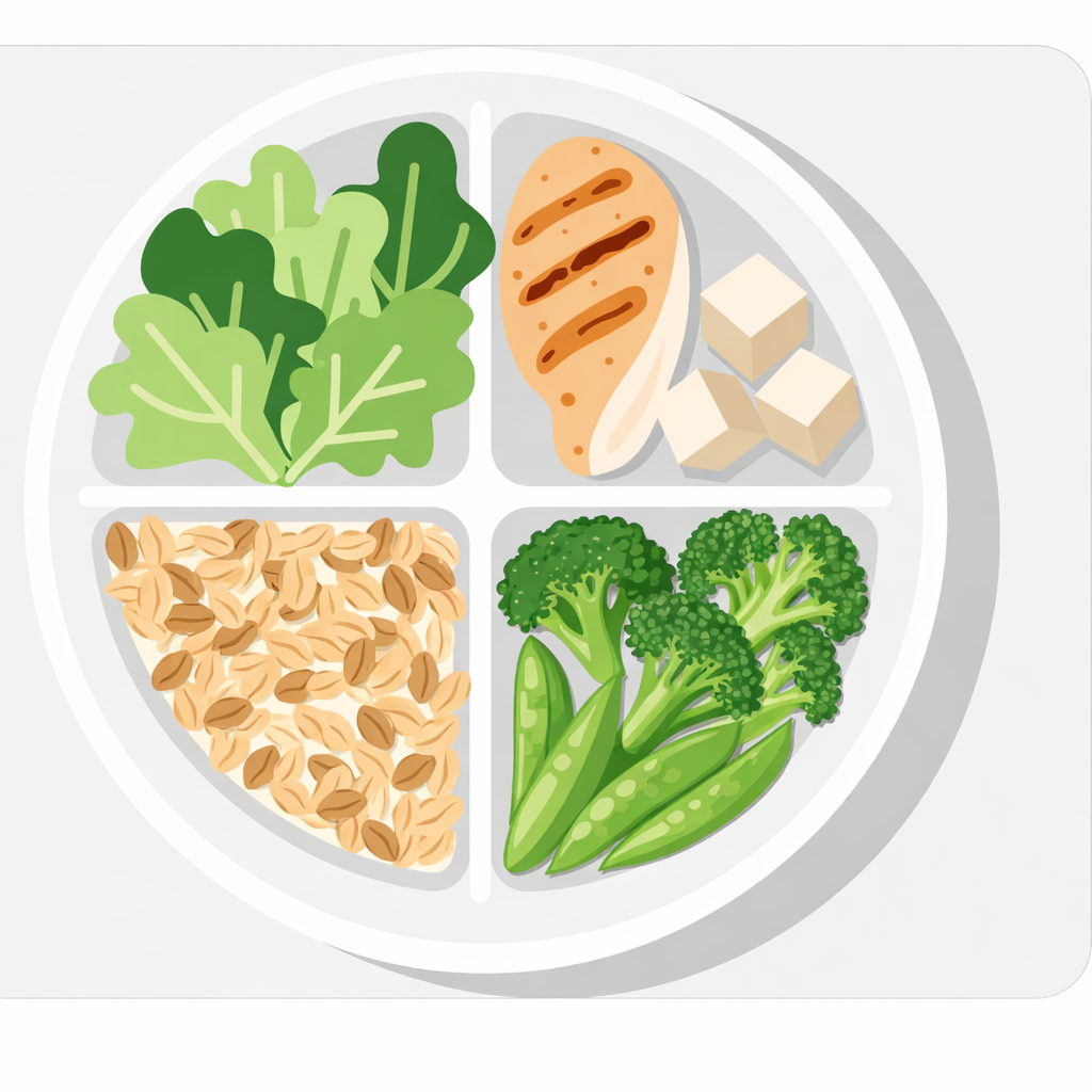 Een eenvoudige manier om een gebalanceerde maaltijd samen te stellen is door je bord in drie delen te verdelen.